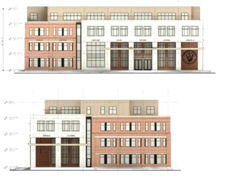 The Center of Government would stand four stories tall. Why there’d be no basement, no one’s adequately explained. But the Center’s top floor would be pulled back from the floors beneath it “so from street viewpoint it scales the building down much closer so it isn’t overpowering the Boardman House,” Best explained.