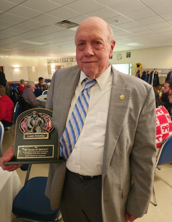 Longtime Enfield firefighter Larry Stilwell received special recognition for his 60 years of service to the Enfield Volunteer Fire Company (EVFC) at the company’s annual banquet and installation dinner Saturday.